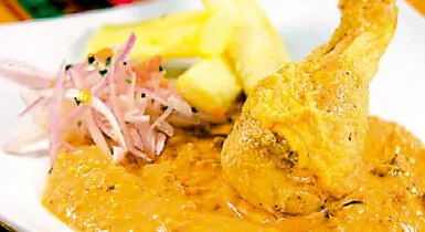 Limpiar la quinua y tostar sin aceite por unos minutos hasta que tome un color ámbar dorado; lavar frotándola varias veces. Remojar por 2 horas. Aparte, hacer un aderezo con ajos y ají panca molido, cebolla perejil picado. Dorar las presas, dejar cocinar. Añadir la quinua escurrida, una taza de agua, dejar hervir hasta que reviente, agregar el maní molido y hervir 10 minutos.