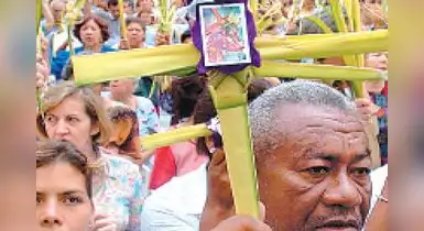 Costumbre: la gente lleva palmas a la iglesia para que sean bendecidas.