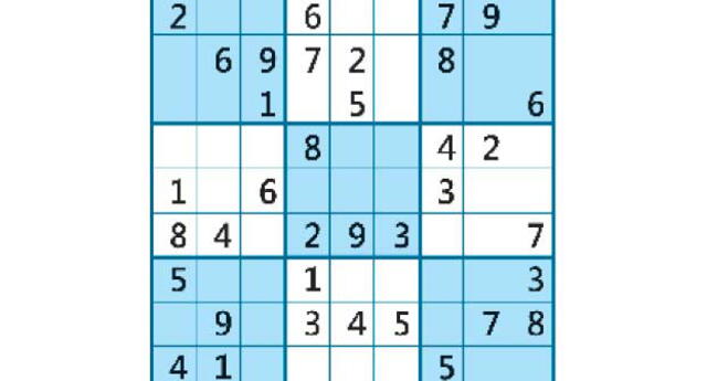 Completa los tableros (subdivididos en 9 cuadros) llenando las celdas vacías con los números del 3 al 9 sin que se repita ninguna cifra en cada fila ni en cada columna ni en cada cuadrado. No necesitas saber sumar ni restar
