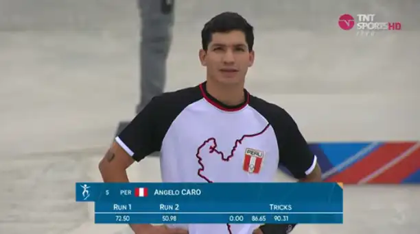 ¡Vamos, Ángelo! El representante peruano de Skateboarding Varonil sufrió un duro golpe en la entrepierna, pero no perdió las esperanzas.