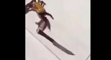Las personas del lugar no dudaron en encender las cámaras para captar la curiosa escena, debido a que el animal cogió un cuchillo con sus tenazas t mientras se movilizaba no soltó el arma blanca , como si se tratara de una amenaza.