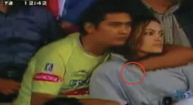 Para su mala suerte, esta pareja jamás imaginó que las cámaras de los principales medios internacionales capturen la escena, justo en el preciso instante en que el joven mete la mano a la altura del busto de su pareja.
