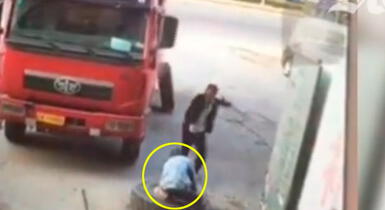 Un grave accidente laboral se registró en un taller mecánico en China, luego de que a un trabajador le explotara en el rostro el neumático de un camión. La brutal salida del aire mandó -literalmente- a volar al hombre.