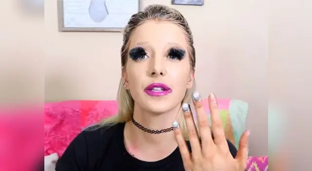 Sin embargo, Marbles creó una compilación de varios productos a la vez. La youtuber se colocó 100 capas de base, labial, laca, esmalte, bronceador y pestañas falsas.