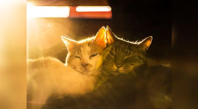 Dos gatos fotografiados juntos