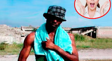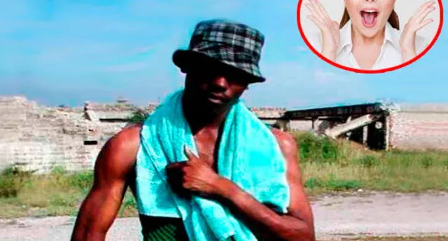 La sensación del 'Negro' Whatsapp, es la imagen de un africano que viste un sombrero de camuflaje, una toalla verde al cuello, una camiseta ceñida y una llamativa cuestión entre las rodillas.