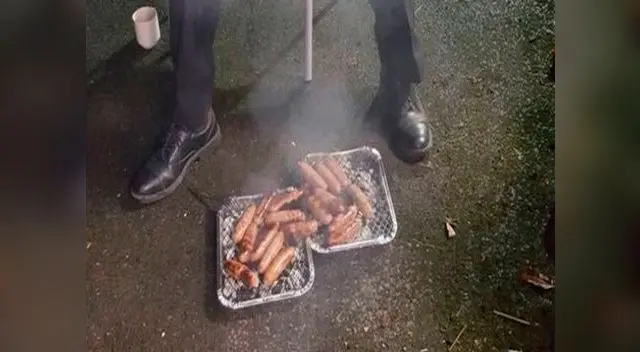 Los bomberos publicaron fotografías en su página de Facebook de la parrillada de salchichas, que calificaron de "fantásticas".
