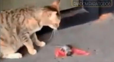 Curioso video de roedor escapando de gato es viral en Facebook y ya tiene más de 20 mil reproducciones.