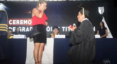 La duda fue resuelta durante la ceremonia de graduación de la Universidad César Vallejo campus Los Olivos. Y es que un joven le propuso matrimonio a su enamorada con quien lleva 10 años de relación, generando así la emoción de los usuarios en las redes sociales.
