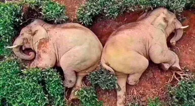En medio de la cuarentena decretada por las autoridades de China para frenar la expansión del coronavirus COVID-19 sucedió acontecimiento inesperado: Elefantes bebieron licor y se tomaron la "siesta".