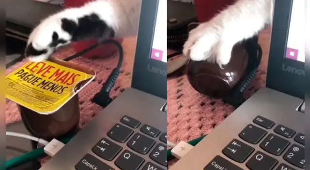 Únete al canal de Whatsapp de El PopularUn pequeño gato se quiso aprovechar la distracción de su dueña en una sesión de teletrabajo, para quitarle con sus garras el delicioso yogurt que iba la fémina en el desayuno. Sin embargo, el minino fue descubierto en pleno robo de comida y expuesto en las redes sociales.