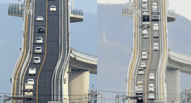 El puente Eshima Ohashi ubicado en Japón, se volvió viral en redes sociales y genera miedo por su gran altura y rígida estructura.