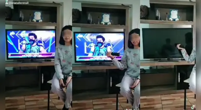 En las imágenes se puede apreciar a la joven mirando el programa de competencia y luego levanta su control remoto señalando la pantalla de su televisión y termina apagando la TV volviéndose viral en las redes sociales.