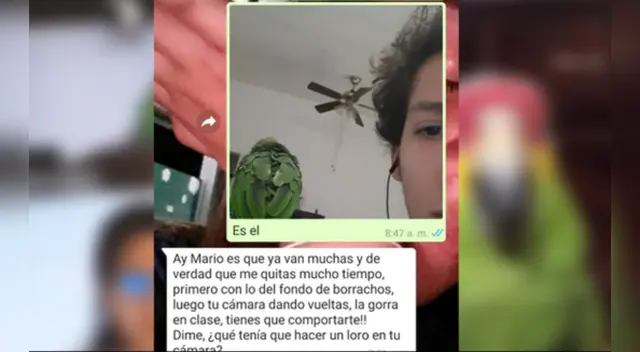 En el video viral compartido en redes sociales sale el loro de Mario, que aparenta estar escuchando a la profesora y mira a la pantalla para no ‘perderse’ ningún detalle de lo expuesto en la clase, llamando la atención de uno de sus compañeros del joven que grabó el divertido momento y lo compartió en YouTube.