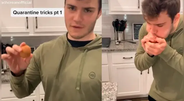 En las imágenes compartidas en TikTok se puede observar cómo el joven muestra su infalible truco en segundos y muestra el paso a paso del novedoso método que tiene para pelar los huevos cocidos durante la cuarentena de una manera específica y nunca antes vista.