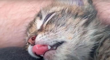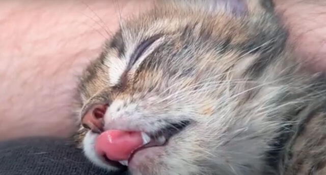 Según la persona que grabó este tierno momento y que se encargó de difundirlo en YouTube, el gatito fue rescatado junto a sus hermanos, lastimosamente uno de ellos falleció. El gatito siempre llora para llamar la atención y cuando él lo cargó, el animal se quedó dormido y pudo captar este tierno momento.