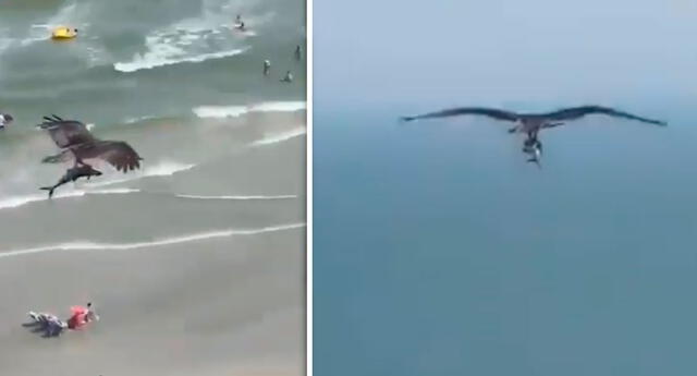 En Facebook un video se convirtió en viral tras ver a una águila cazando a un tiburón bebé y se lo lleva volando; el suceso ocurrió en la playa Myrtle Beach de Florida, en Estados Unidos.