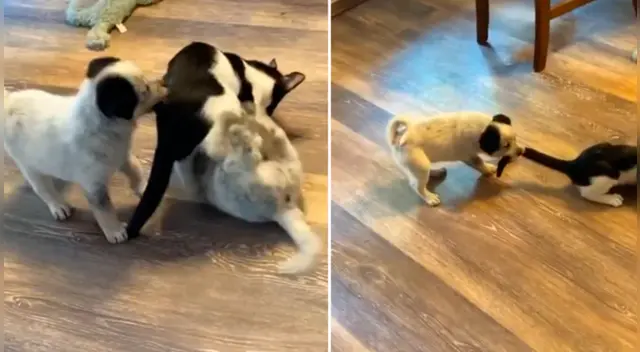 Este hecho sorprendió a los usuarios en las redes sociales por la valentía de la pequeña perrita que salió en defensa de su hermano y dejaron tiernos comentarios por su accionar frente al ‘malvado’ gatito.