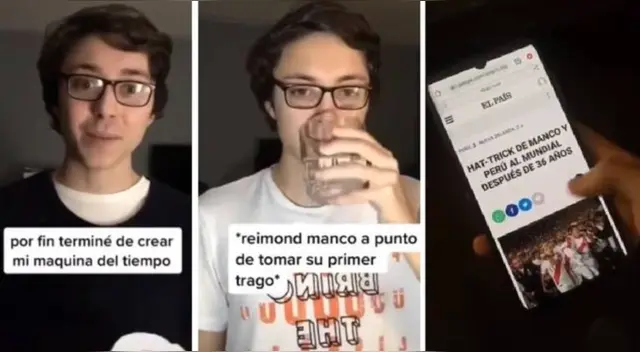 En las imágenes virales TikTok nos muestra al adolescente acabando su ‘máquina del tiempo’ y decide ir al año 2008 para encontrarse con un joven Reimond Manco, quien es protagonizado por él mismo, con el único fin de impedir que el futbolista peruano pruebe el alcohol por primera vez para que lleve a Perú a un Mundial.