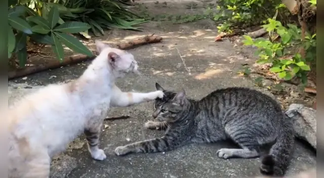 Como se puede ver en las imágenes compartida en YouTube, la gata está sosteniendo la cabeza de su ‘pareja’ mientras maúlla furiosamente ‘llamándole la atención’ al otro por no venir a verla ni un día durante la cuarentena por el coronavirus. Este hecho fue captado por el dueño de uno de los felinos a escondidas por el particular reencuentro que desató la risa de miles de usuarios en las redes sociales.