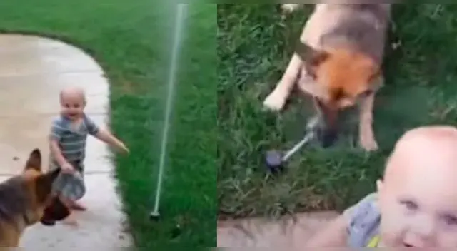El can se tomó muy en serio la protección de su pequeño amo y peleó contra un aspersor de agua para salvarlo, logrando que miles de usuarios resalten su actitud protectora al más pequeño de su ‘familia humana’ y robándose el corazón de miles de usuarios en las redes sociales.