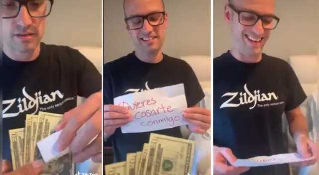 En las imágenes virales de TikTok muestra cómo la joven le ofrece 100 dólares a su pareja a cambio que le diga una frase oculta que está escrita en un papel. El mensaje decía “¿Quieres casarte conmigo?”, sin embargo, el joven al leerlo se ríe mirándola fijamente y la sorprende con una curiosa respuesta.