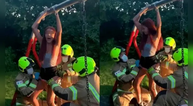 En el video viral se observa cómo la joven está atrapada en el columpio y es ayudada por los bomberos mientras sus amigas graban el vergonzoso momento mientras se ríen a carcajadas por lo cómico de la situación. Tras el incidente, el hecho fue compartido en las redes sociales volviéndose rápidamente en tendencia.