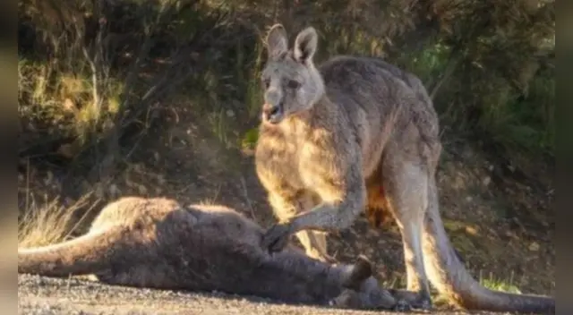 La emotiva instantánea fue difundida por el rescatista de vida salvaje Pam Rixon y publicada por la página de Facebook Australian Society for Kangaroos. Asimismo, la sentida fotografía fue compartida por varias páginas animalistas que lamentaron el triste final del canguro hembra y resaltaron la inmensa tristeza de su pareja al verla sin vida.