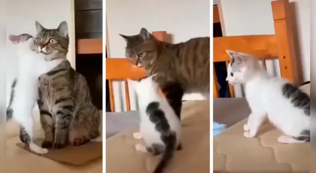 Asimismo, en el clip compartido en las redes sociales, la madre del gatito sorprendió de mala manera a su hijo recién nacido en el momento que este le estaba dando abrazos y mimos, debido a que terminó mordiéndolo en el rostro y cuerpo para que dejara de hacerle mimos.