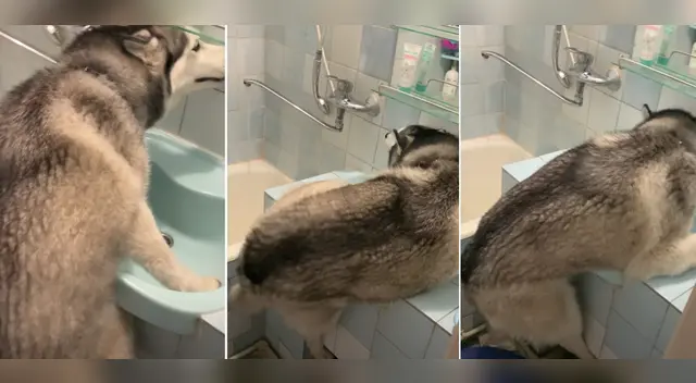 En las imágenes virales de YouTube, el can observa cómo se va llenando la tina con el agua e intenta subirse al lavamanos para evitar que su dueña lo meta a la bañera, sin embargo, no puede subirse por su tamaño dado que el recipiente es muy pequeño. Incluso, su propio peso hace que termine resbalándose al suelo sin poder lograr lo que se propone