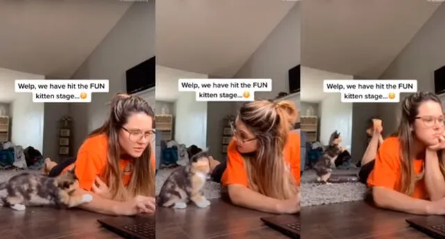 Es viral en YouTube. El pequeño gato insiste en querer jugar con su dueña pese a los llamados de atención.