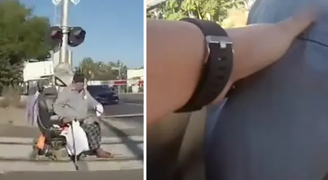 En las imágenes virales de TikTok se observa a la agente policial del Departamento de Policía de Lodi, en California, se baja de su auto tras percatarse de la fatal escena y corre a ayudar al anciano. Al llegar a él, toma su silla de ruedas y lo empuja para sacarlo de las vías del tren. “Levántate, levántate, levántate”, se le escucha gritar desesperada al longevo al ver que el vehículo se aproxima a toda velocidad ferroviario.