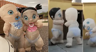 Según relató la autora viral de clip, quien fue asistente de la fiesta, la llegada de dos bebés ’gigantes’ a la fiesta ocasionó gran alboroto entre la multitud, pues se sabría al fin que sexo tendría el nuevo integrante de la familia, pero lo que nadie imaginó es que habría una lucha entre los dos muñecos inflables para dar a conocer el sexo biológico del menor.