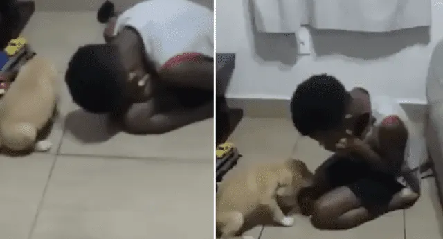 En las imágenes virales de Facebook se observa cómo el menor está jugando y se percata de que su madre entra con un pequeño perro en brazos. El niño no podía creerlo y se queda unos segundos mirando a ambos, y al final, termina llorando arrodillado sin poder creer que sus sueños se hicieron realidad: Iba a tener un ‘fiel amigo’ de travesuras.