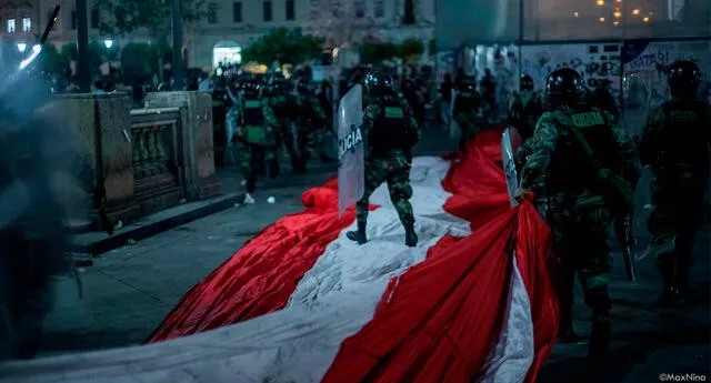La imagen desató la indignación de cientos de peruanos que cuestionaron una vez más el accionar de los policías durante las manifestaciones que se desarrollan en Lima y en diferentes puntos del país.