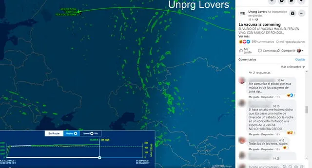 En las transmisión de Facebook se puede ver el recorrido EN VIVO de la vacuna Sinopharm a Perú, pero con fondo musical de cumbia peruana.