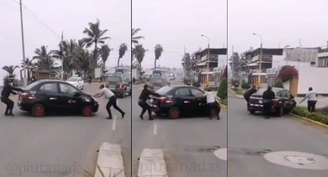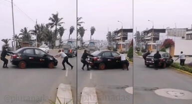 Tal como puede verse en el video compartido en Instagram también por la página ‘Piuranadas’, los agentes y el chofer hacían de todo para evitar que el vehículo siga avanzando, pero era imposible.