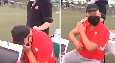 Mientras el camarógrafo estaba grabando, un hombre reaccionaba muy nervioso al momento de inocularse. Él se tapaba la cara mientras que la enfermera le indicaba que recibiría la vacuna siempre y cuando estuviera preparado.