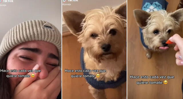 ¿Qué hizo el can? La muchacha captó con su celular cómo su mascota ‘fingió’ llorar para ablandar su corazón y lograr que ella le invite su ensalada. “Hace esto cada vez que quiere tomate”, se lee en el clip viral de TikTok.