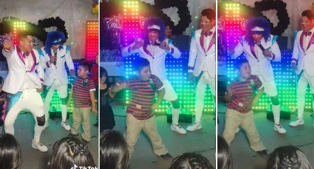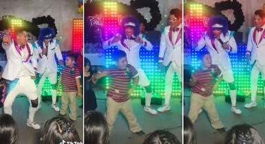 El menor fue la sensación de la fiesta infantil a la hora de bailar "Tú estás dura sin ir al gym", después que uno de los payasos lo retara a un duelo de baile de TikTok.