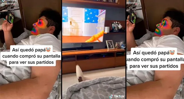El hombre compró un televisor para ver sus partidos, pero tuvo que conformarse mirándolo por su celular luego que su hijo se adueñara de la tele para ver sus dibujos animados. La curiosa momento es viral en TikTok.
