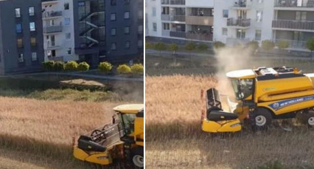 Las imágenes del hombre montado en su tractor rodeado de modernos edificios se han vuelto virales en YouTube. Allí se lo ve trabajando la tierra para levantar la cosecha en su campo que mantiene hasta el día de hoy.