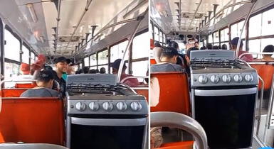 Pasajero lleva su cocina en un bus y usuarios lo trolean: “Lo que uno hace para no pagar taxi” [VIDEO]