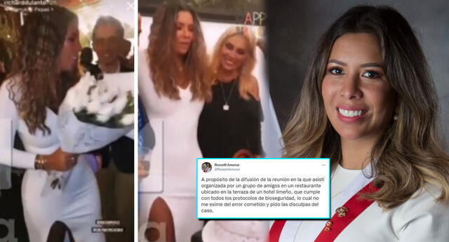 "La congresista Rosselli Amuruz dice que sus amigos la “homenajearon” pero era ella quien enviaba las invitaciones para el homenaje… no es que ella se enteró ese día. Parece que se desubicó, acostumbrada a sus juergas en Miami…", escribió la conductora en su cuenta verificada de Twitter.