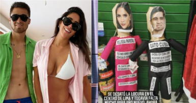 Como se ve en la fotografía difundida, la piñata de Melissa Paredes lleva frases como "Fui honesta y leal", "El Gato sabía que ya no estábamos" o "Tú no eres de mi circulo cercano". Mientras que la de Rodrigo Cuba dice: "Me humillaste a nivel nacional", "Por favor, no te calatees", "Me entero de mi divorcio por las redes sociales".