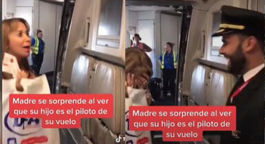 El emotivo momento ocurrió en México, cuando la madre abordaba el avión y fue sorprendida por su hijo, quien le dice que él será el piloto del avión. Lo que no imaginó el joven fue la inesperada reacción que tenía su progenitora con la grata noticia.