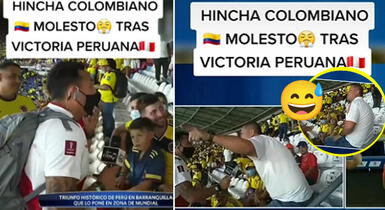 El reportero tuvo un intercambio de palabras con el hincha colombiano, quien molesto por el triunfo de la Bicolor intentó minimizar el gol de ‘Orejitas’ y la actuación del resto de jugadores nacionales.