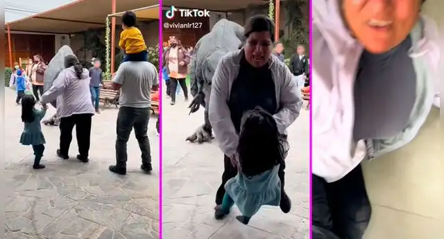 “Menos mal fue un susto”: madre e hija acaban en el piso tras intentar escapar de un 'dinosaurio' [VIDEO]
