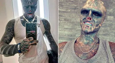 Anthony Loffredo ‘Black Alien’ ha cubierto la mayor parte de su cuerpo con tatuajes, incluyendo sus globos oculares. Le colocaron implantes debajo de la piel en la cabeza y los brazos y le amputaron dos dedos, partes de la nariz y ambas orejas. También tiene la lengua dividida por la mitad para crear un efecto bifurcado.