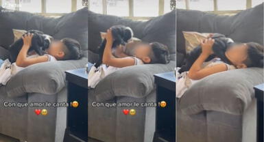 Tal y como se puede ver en el clip que está en TikTok, el niño está echado en su mueble mientras sujeta a su cachorrito en el aire. En la sala donde esta se escucha el sonido de la popular canción de Jerry Rivera "Tal vez". Es hay cuando pasa el momento más lindo entre el perrito y su dueño que llegó a tocar los corazones de miles.
